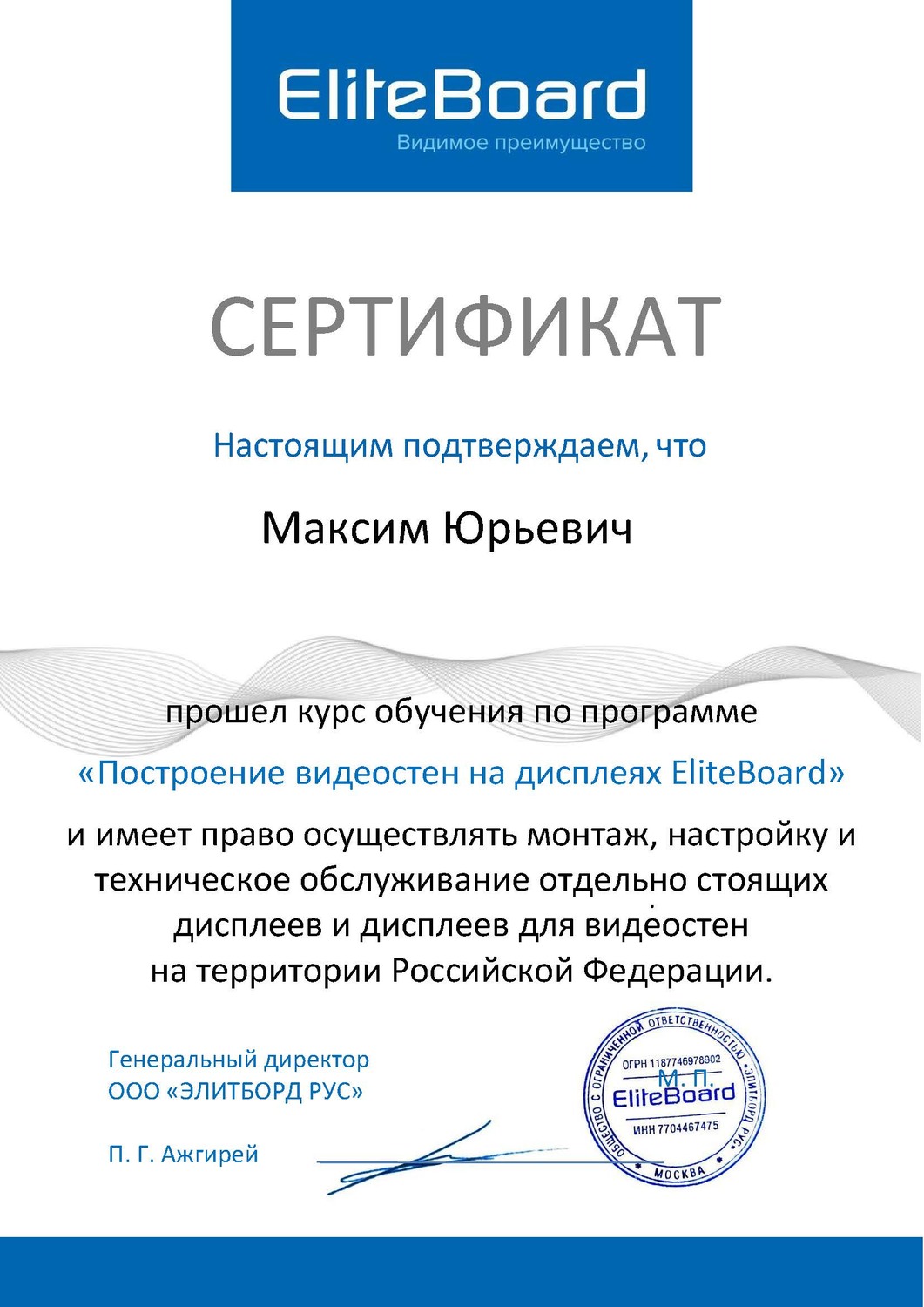 Видеостена Eliteboard из профессиональных дисплеев 55" с суммарной толщиной рамок 0.88 мм, прямой светодиодной интеллектуальной подсветкой, проходным сигналом 4К@60Гц в комплекте с настенным креплением